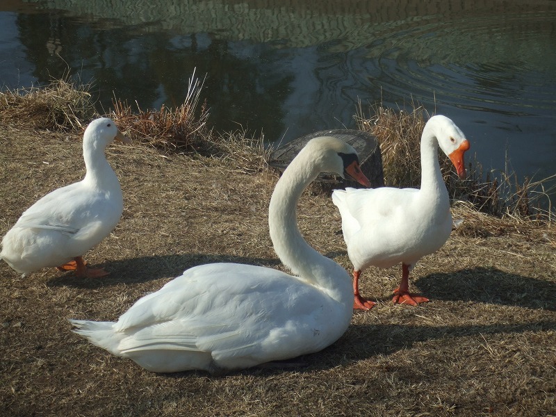 左から、アヒル、コブハクチョウ、ガチョウ